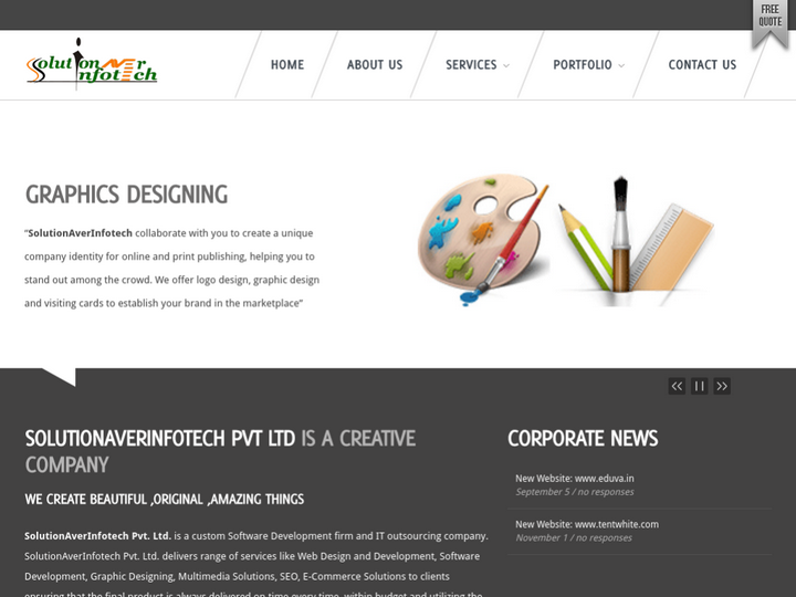 SolutionAverInfotech Pvt. Ltd. is a custom Software Development firm and IT outsourcing company. SolutionAverInfotech Pvt. Ltd. delivers a range of services like Web Design and Development, Software Development, Graphic Designing, Multimedia Solutions, SEO, E-Commerce Solutions to clients ensuring that the final product is always delivered on time every time, within budget and utilizing the finest techniques, technology and creative thinking at our disposal.