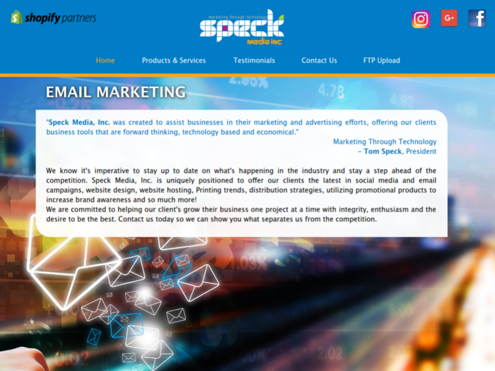 We know it's imperative to stay up to date on what's happening in the industry and stay a step ahead of the competition. Speck Media, Inc. is uniquely positioned to offer our clients the latest in social media and email campaigns, website design, website hosting, Printing trends, distribution strategies, utilizing promotional products to increase brand awareness and so much more!