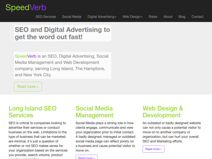 SpeedVerb is New York and Long Island’s #1 source for seo and digital advertising services including: content creation, web design and development, social media management and blog writing. Our philosophy is based on the principles and importance of client engagement. Prior to taking on a project we seek to truly understand our client’s industry, goals and intentions as part of teaming up on a search engine marketing plan to designed to reach those goals.