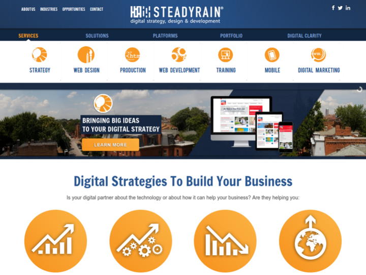 SteadyRain was founded in 1999 by a team of web professionals determined to help businesses and organizations navigate the quickly-growing digital landscape and take advantage of the revenue-generation opportunities it provided. Today, our services have expanded into digital marketing, mobile development and custom digital solutions to provide an integrated approach to engaging audiences online for a diverse client base, ranging from small and medium-size businesses to Fortune 500 companies.