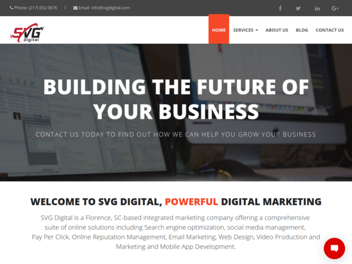 SVG Digital is a Florence, SC-based integrated marketing company offering a comprehensive suite of online solutions including Search engine optimization, social media management, Pay Per Click, Online Reputation Management, Email Marketing and Web Design.