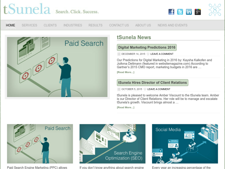 T Sunela is an internet marketing company which was founded in 2006 by current co-owners JoAnna Dettmann and Kaysha Kalkofen. The headquarter of the company is located in St. Louis, MO, with a satellite office in Portland, OR.