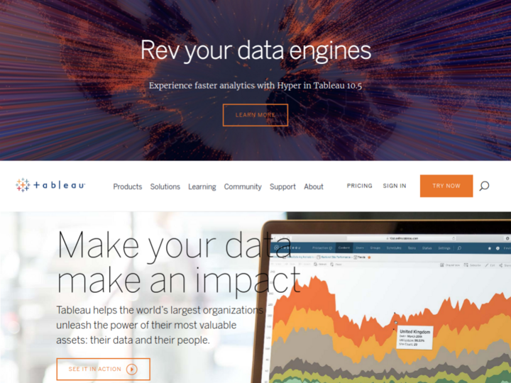 Tableau is focused on one thing - helping people see and understand data. Organizations everywhere, from non-profits to global enterprises, and across all industries and departments, are empowering their people with data. With Tableau they are finding opportunities in their business that they have never seen before. Learn more about how organizations like yours are using our platform to drive their business forward.
