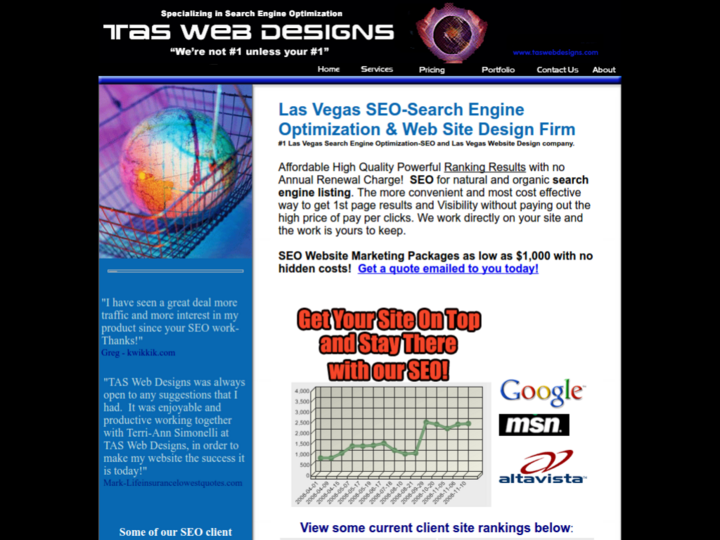 Las Vegas web design company and Las Vegas SEO company, TAS Web Designs, is based in Las Vegas, Nevada. Due to the fact that we have little to no overhead, we are able to bring you affordable yet quality web sites. We limit our projects to a minimum so that we can dedicate our time to one website at a time.