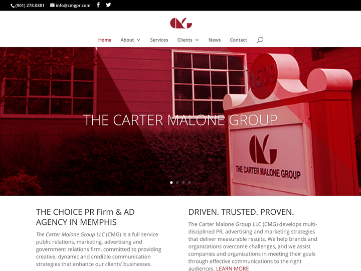 The Carter Malone Group LLC (CMG) is a full service public relations, marketing, advertising and government relations firm, committed to providing creative, dynamic and credible communication strategies that enhance our clients’ businesses.