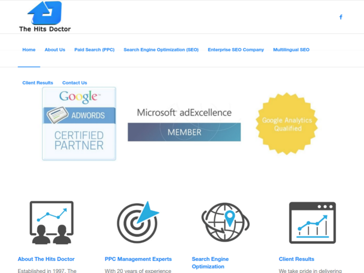 Established in 1997, The Hits Doctor is a leader in Search Engine Optimization (SEO) and Pay Per Click (PPC) management. We specialize in Enterprise Level SEO for Fortune 500 companies and provide cost effective SEO/PPC services to small and medium sized business.