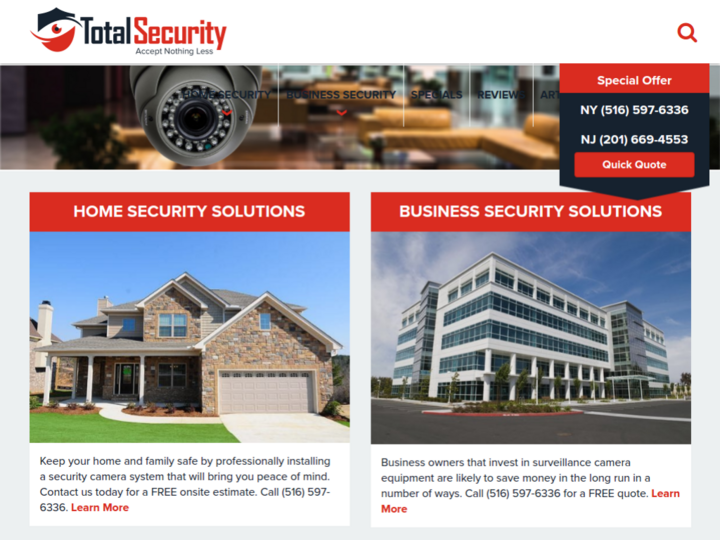 Security camera installations in Queens, Manhattan, Brooklyn, the Bronx, or Long Island, NY Total Security is a full service security camera systems and Loss Prevention company serving the New York Metro area. We pride ourselves on professional installations & service of security cameras, video surveillance cameras, access control, intercoms, biometric & GPS tracking.