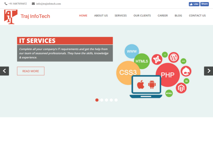 Traj InfoTech is a resourceful and proficient IT service providing company. We strive to provide the BEST IT service to maximize your technology. We have team with highly trained professionals with the set of skills required to triumph over an IT field. We provide tailor-made services as per the needs be of our clients. Our core services span over web and mobile application development, Digital marketing services, and many more. We hold ourselves to enormously high standards of professionalism, authenticity and precision, and we invite you to put us to the test! Our support your solution, just a click away.