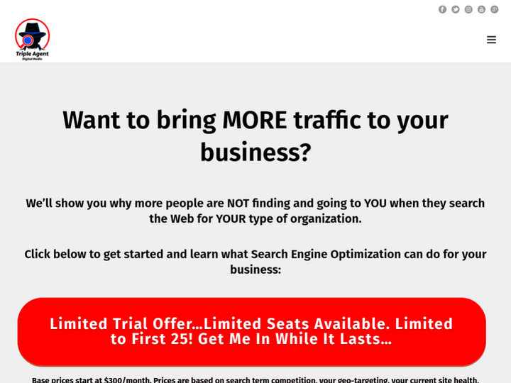Triple Agent Digital Media runs special offers from time to time. We also offer free initial discovery calls for new clients. To get to know how we can help you, call or text us or visit our website to schedule an appointment!