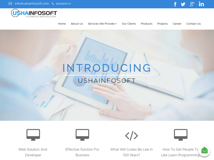 Ushainfosoft it's a Corporate IT Company in Aurangabad providing IT Services since 2013. we are It consultant and recruitment company providing implant training and offers IT related courses. We are providing services like Website design, website development, software development, Search Engine Optimization, Andoird application development, Logo Design, Graphics Design, Web hosting, domain registration, Internet Marketing, Social Media Promotion, Email Marketing, E-commerce Solutions, network Solution, harware solution, data backups and restore,