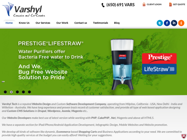 Varshyl Technologies have been at the top in the US based website development and design companies for more than a decade. We initiated our organization with the fresh talent and started to offer a complete range of services from small companies to big enterprises. Our team gained experience by completing the challenging projects.
