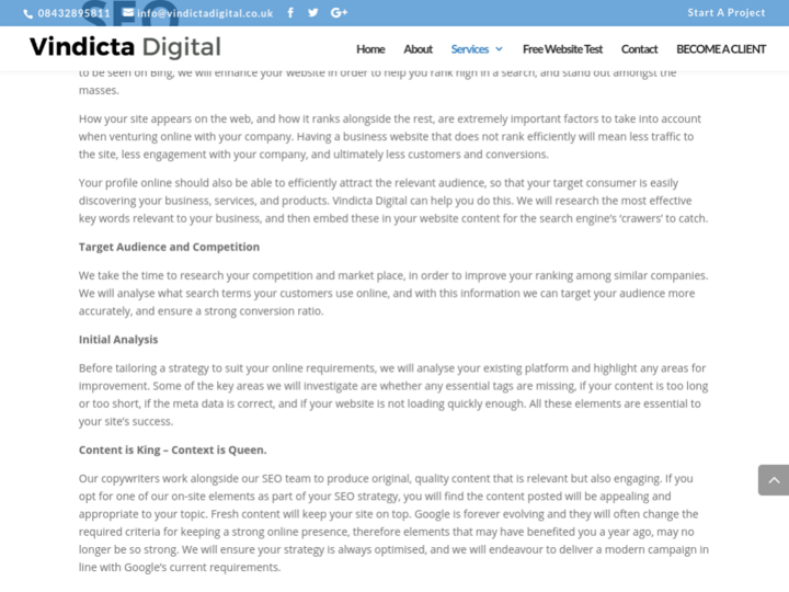At Vindicta Digital – Our ethos is strongly focused on developing relationships with our clientiele basing this relationship on a solid foundation of results and transparency. When we were formed we noticed a gap in the market for a digital company that cares – we understand that, as our clients grow as do we.