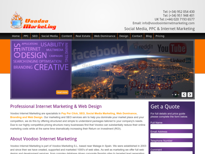 Voodoo marketing is a part of Voodoo marketing S.L. based in Magala, Spain. The company was established in 2003 and since then, it has been creating exceptional websites. It specializes in SEO, pay per click, social media marketing ,branding, web design and web dominance services. The SEO services provided by the company enable your website to stand in the competition undergoing in the market place. The services are provided at affordable prices with increased ROI. The company offers web development services from complex database drives sites to lead generating land pages.
