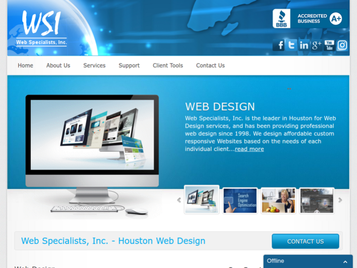 Web Specialists, Inc. is a Houston based Web Design Company that was founded in 1998 with private funding provided directly from the founders. By not borrowing start-up money as most of our competitors have done, it has allowed Web Specialists, Inc. to remain debt free and profitable during its entire existence. Today in its 19th year in business, Web Specialists, Inc. is still run by the original founders, and is the leader in Houston, Texas for web design, Internet Marketing, Graphic Design, E-commerce, Database Development, Custom Programming, Web Hosting and Network Services.