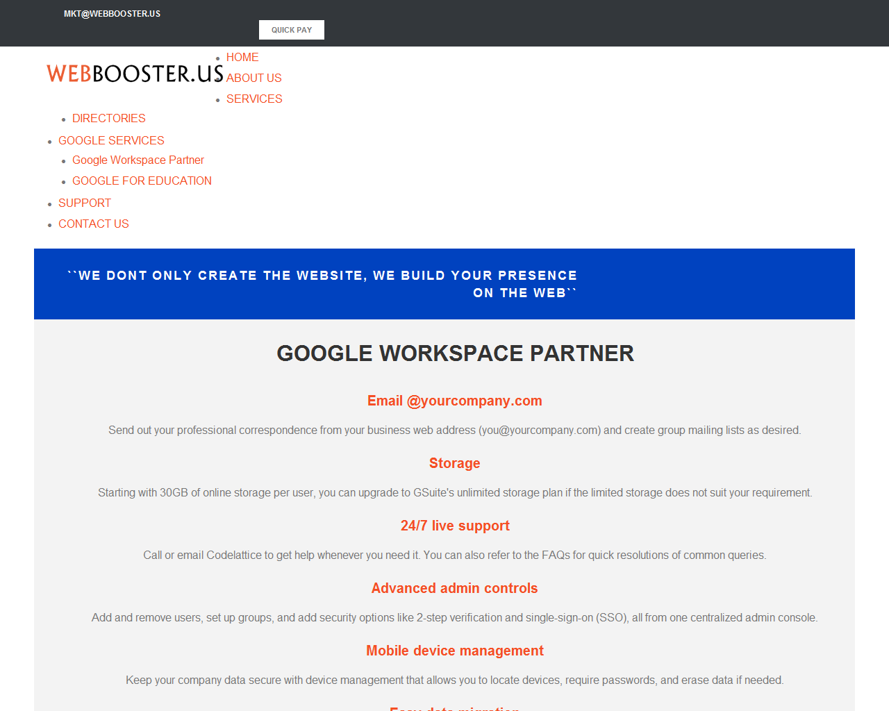 WEBBOOSTER is the leading internet marketing service provider & web designing company. We offer the complete package of exciting web hosting solutions including domain name registration, shared hosting, cloud hosting, server co location, email services, email filtering and product promotion services including web designing, web development, search engine optimization, search engine marketing, pay per click and more. We feel pride in endowing our clients with the entire online web services under one roof at the very competitive price.