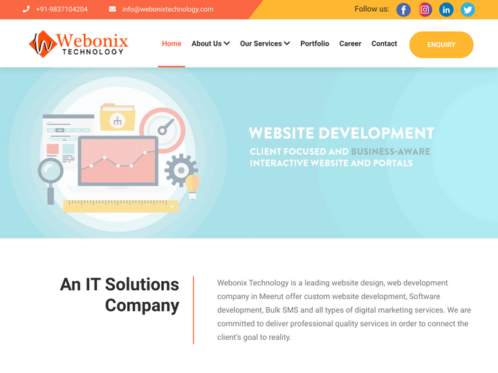 Webonix Technology is leading best Website designing and Software Development Company in Meerut. We provide reliable and top quality services like Website designing, Website Development, E-commerce Website, Software Development, Digital Marketing, web-based School software development, Bulk SMS, Search Engine optimization (SEO) and Domain Registration. We develop beautiful and content oriented CMS website also at effective price. We are a firm of dynamic, innovative Developers and Marketing experts. We have many years of experience within the industry, and our familiarity with the Indian market needs is our strongest assets which has set us apart from among the crowd. Webonix Technology is a recognized and reputed name in IT industry Meerut.