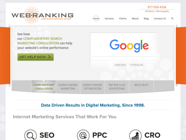 WebRanking, a division of Locology L.L.C., is an Internet Marketing and Search Engine Optimization (SEO) company with offices in Portland, Oregon and Minneapolis, Minnesota. WebRanking was founded in the spring of 1998 with the vision of providing high quality internet marketing services founded in trust, integrity and solid business ethics.