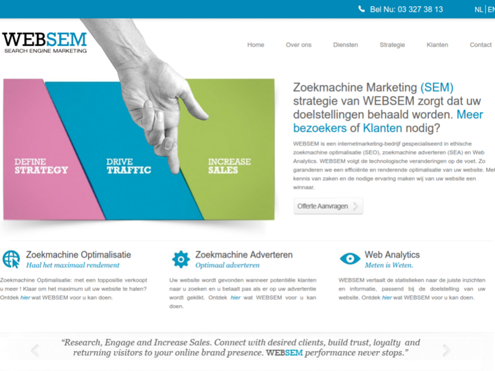 WEBSEM is an internetmarketing-company specialized in ethical search engine optimization (SEO) , pay per click or Search Engine Advertising (SEA) and Web Analytics. Websem follows the changes in this market very closely. We guarantee an efficient and profitable optimization of your website. With strong knowledge and experience we make your website a winner.