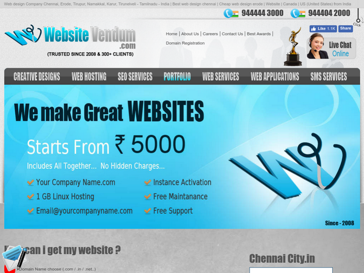 WebsiteVendum.com a unit of EMAS Group company based in Chennai & Head Office at ERODE, is an established website design company. It creates quality websites for you and you need not worry about any upper limits. The company provides all the services right from the domain registration, Web design, and Web Hosting.