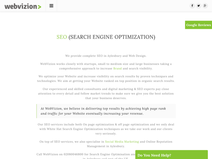 WEBVIZION is a UK based, Complete Web Solutions Company having its Corporate Office in London, United Kingdom and with extended offices in Aylesbury and New York, USA. Our expertise in Website design, Website Development, Website Maintenance, Content Managed Websites, CMS, E-Commerce Websites, Digital Marketing / Online Marketing, Search Engine Optimization (SEO), Online Reputation Management, Branding / Brand Identity, Content Marketing and last but not the least Social Media Marketing, gives your business a cutting edge over your competitors.