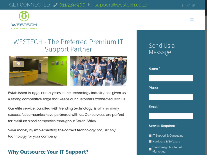 Westech Web Design is an IT Support Company which has over 20 years of experience in IT Support, Networking, Maintenance and IT Services. The company is regarded as one of the top leading IT Companies in Johannesburg, Cape Town and Durban. The head office of Westech Web Design is in Sandton, Johannesburg.