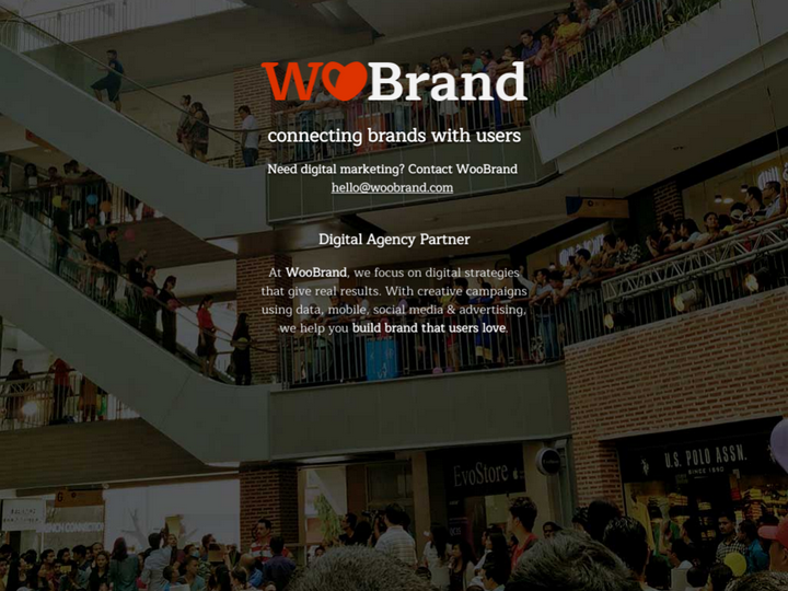 WooBrand - Digital Agency Partner. At WooBrand, we focus on digital strategies that give real results. With creative campaigns on mobile, web, social media marketing & advertising, we help you build brand that users love.