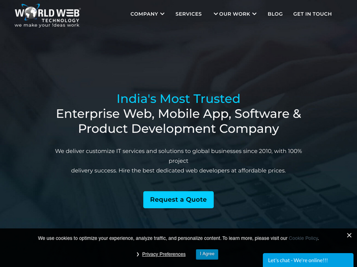 World Web Technology is one of the leading website designing & mobile application development company located in India, provides custom software development services worldwide. We are backed by a team of 70+ full-time resources who deliver high-quality business solutions to global clients spanning diverse industry verticals.