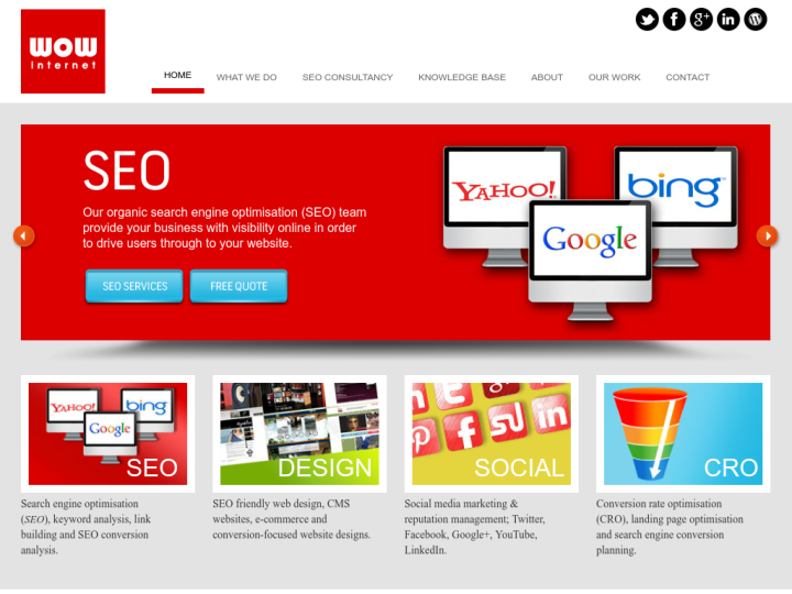 Wow Internet Provides quality result in the Website development sphere. It provides SEO, social media optimization, web designing, international SEO, Conversion rate optimization and Google penalty recovery services.
