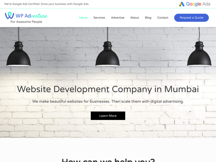 WP Adventure is one of the leading website development company in Mumbai. Having years of experience under the belt, we have been able to offer professional and modern website design solutions to businesses and helped them succeed online.