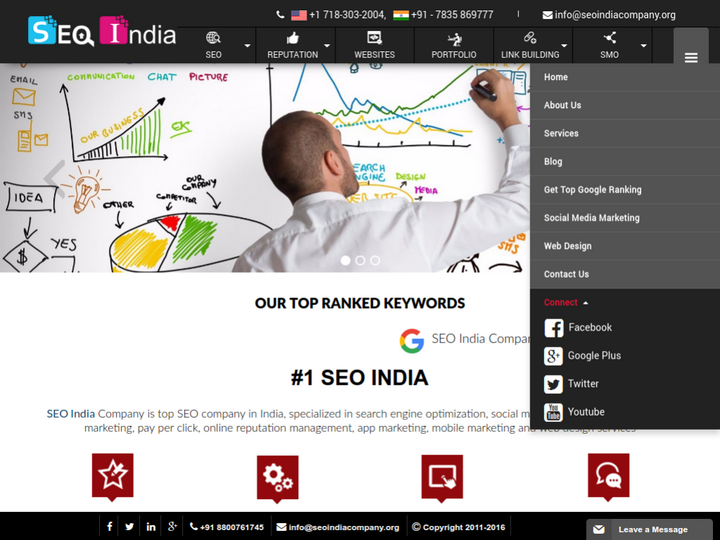 SEO India Company is top SEO company in India, specialized in search engine optimization, social media marketing, search engine marketing, pay per click, online reputation management, app marketing, mobile marketing and web design services.