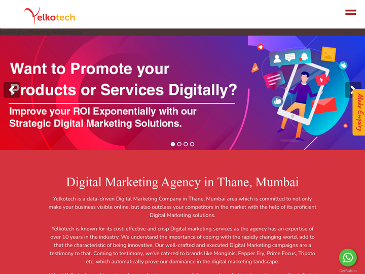 Yelkotech is a data driven Digital Marketing Company in Thane, Mumbai delivering Digital marketing services like digital marketing strategy and consulting, SEO (Search Engine Optimization), PPC (Pay Per Click Advertising), SMO (Social Media Marketing), ORM (Online Reputation Management), CRO (Conversion Rate Optimizatio), ASO (App Store Optimization), Mobile Marketing, Influencer Marketing, Email Marketing, Google Analytics, website designing and development, Google Analytics, online branding services, etc. 16 Years of Experience in Digital Marketing. Served to multiple startups, SME, MSME, etc to get more online traffic, leads and sales
