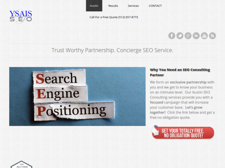 We form an exclusive partnership with you and we get to know your business on an intimate level. Our Austin SEO Consulting services provide you with a focused campaign that will increase your customer base. Let’s grow together! Click the link below and get a free no obligation quote.