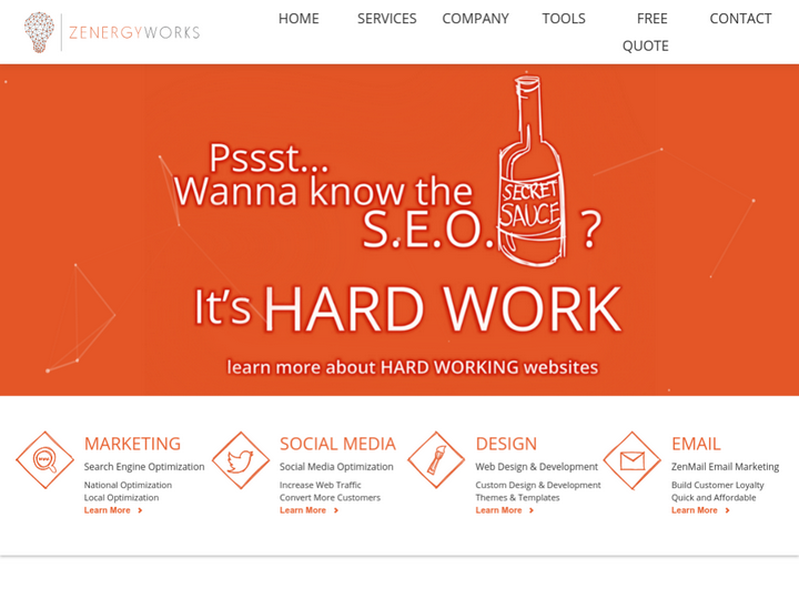 Below is a snapshot of Zenergy Works Local SEO, National SEO, Social Media Optimization and Web Design. We maintain Non-disclosure Agreements with many of our clients, so this is by no means an exhaustive portfolio of all our work, but we hope you will enjoy a sample of our successes in SEO, SMO and Web Design pictured here with client permission.
