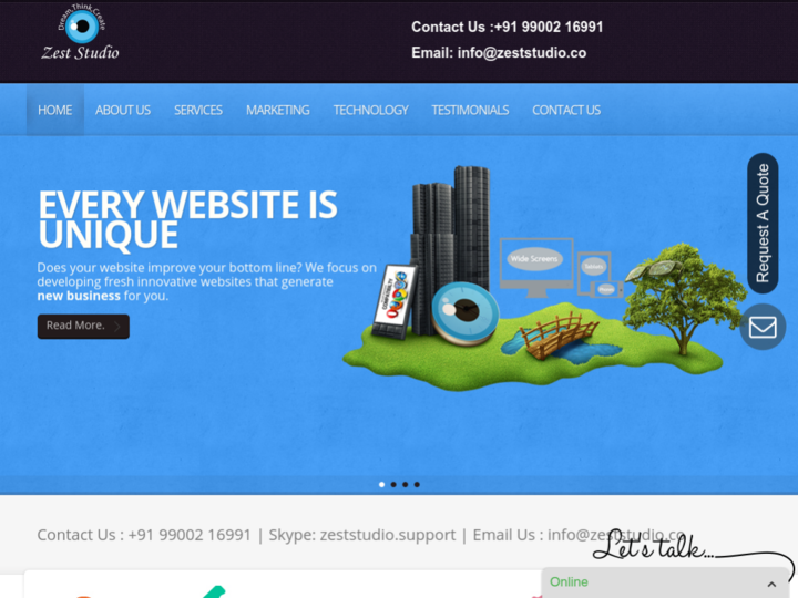Welcome to Zest Studio is a web development company established in India, Bangalore with branches internationally, It has a long way building trustworthy customer relationship by delivering quality and customer satisfaction.